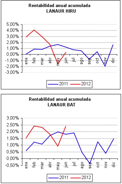 Ya tenemos los datos de la rentabilidad obtenida por las EPSVs Lanaur BAT e HIRU a 30 de Junio de 2012.