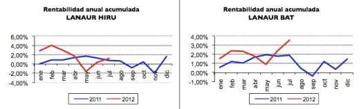 Ya tenemos los datos de la rentabilidad obtenida por las EPSVs Lanaur BAT e HIRU a 31 de Julio de 2012.