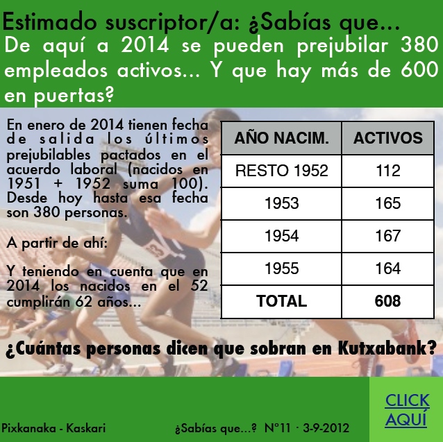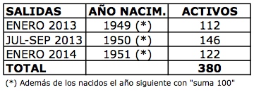 Conforme con lo pactado en el acuerdo laboral del 15 de septiembre de 2011 las próximas salidas por prejubilación son las siguientes: