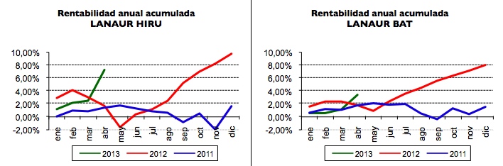 Acabamos de recibir la rentabilidad acumulada a abril de las Lanaur. Ante la incredulidad generalizada de nuestro equipo de análisis, hemos solicitado confirmación de la misma. Una vez recibida la contestación, refrendando el dato, nuestro equipo de análisis nos dará su opinión cuando vuelvan de celebrarlo.
