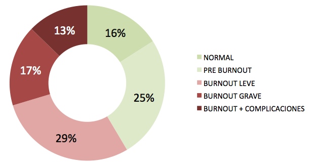 Un 30% (33% en Oficinas) se encuentran en una situación calificada de Bunout grave o con complicaciones.- El 66% de los encuestados (71% en Oficinas) entienden que no tienen apoyo por parte de la estructura del banco en su trabajo.