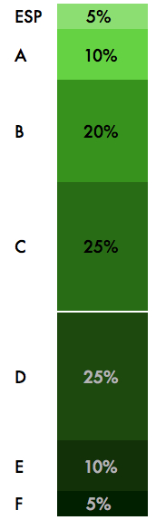 Dicha clasificación ordena las oficinas minoristas de mayor a menor en base al volumen de negocio, y asigna una categoría en base al percentil en la que se encuentra la misma: