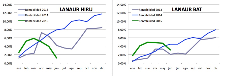 Lanaur HIRU: 1,22% (4,81% interanual) Lanaur BAT: 3,08% (6,52% interanual)