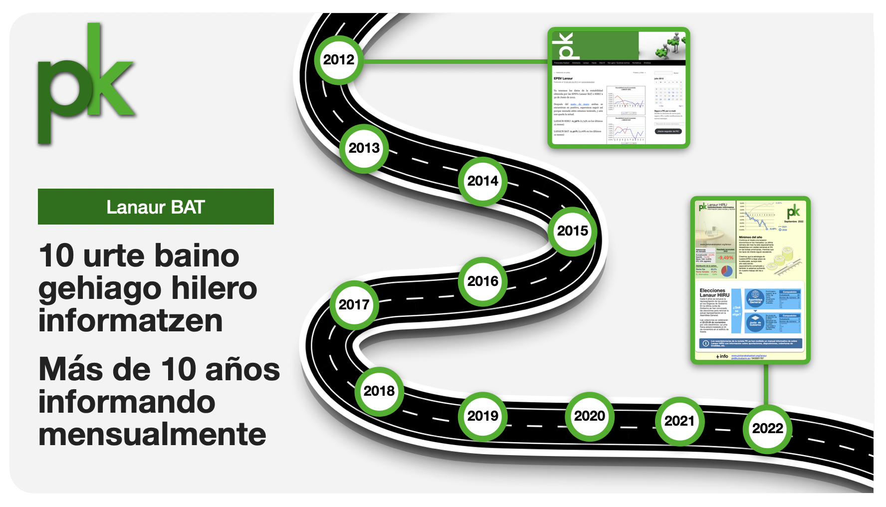 Orduz geroztik, 125 hilabetez jarraian, errentagarritasunaz gain, beste gai garrantzitsu batzuen berri ematen jarraitu dugu, bazkideek zuen BGAEa, eskubideak eta estaldurak ahalik eta ondoen ezagut ditzazuen.