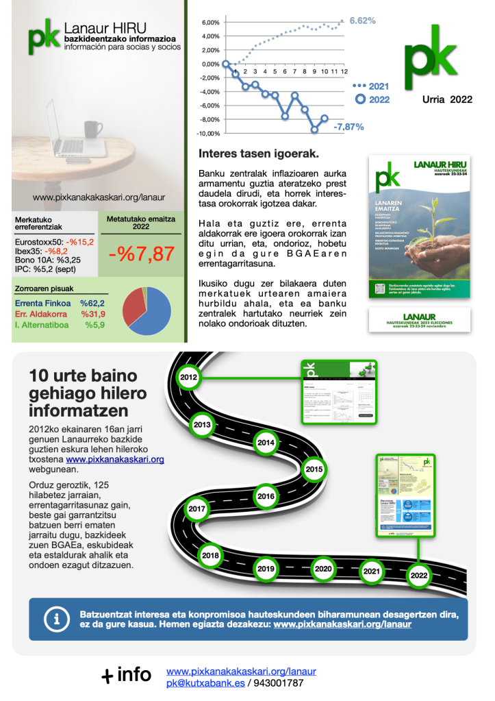 2022ko urria: interes tasen igoerak + 10 urte baino gehiago hilero informatzen.